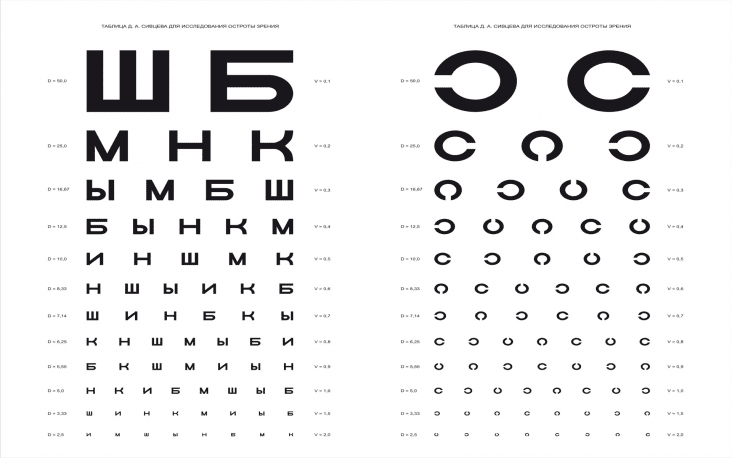 Sivtsev jadvali ko’rish qobiliyati jadvali sifatida ham tanilgan, turli masofalarda ko’rish keskinligini